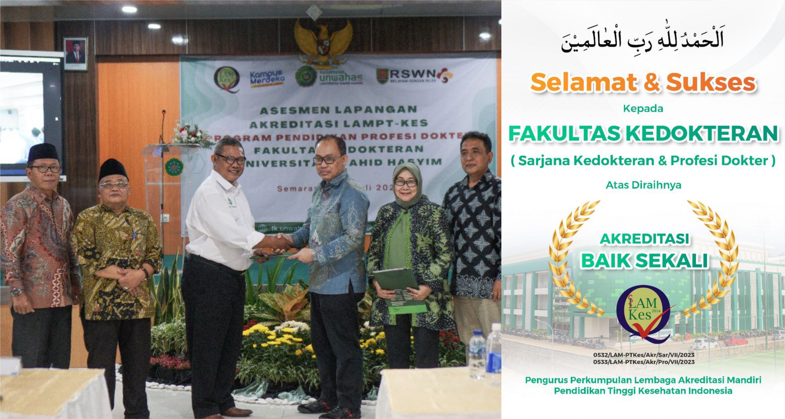 Lembaga Penjaminan Mutu Pendidikan (LPMP) Universitas Wahid Hasyim (Unwahas) mengucapkan selamat dan sukses kepada Fakultas Kedokteran Unwahas untuk program sarjana Kedokteran dan Pendidikan Profesi Dokter atas diraihnya predikat Akreditasi “Baik Sekali” dari Lembaga Akreditasi Mandiri (LAM) Perguruan Tinggi Kesehatan, (7/8/2023).