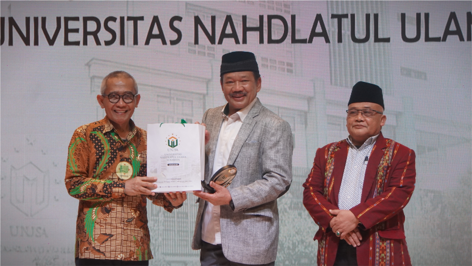 Kunjungan yang disambut hangat oleh Sivitas Unusa, diikuti oleh Pimpinan Yayasan Wahid Hasyim, Pimpinan Universitas, Fakultas, Lembaga, Kantor, dan Program Studi dalam satu rombongan dua armada bus.