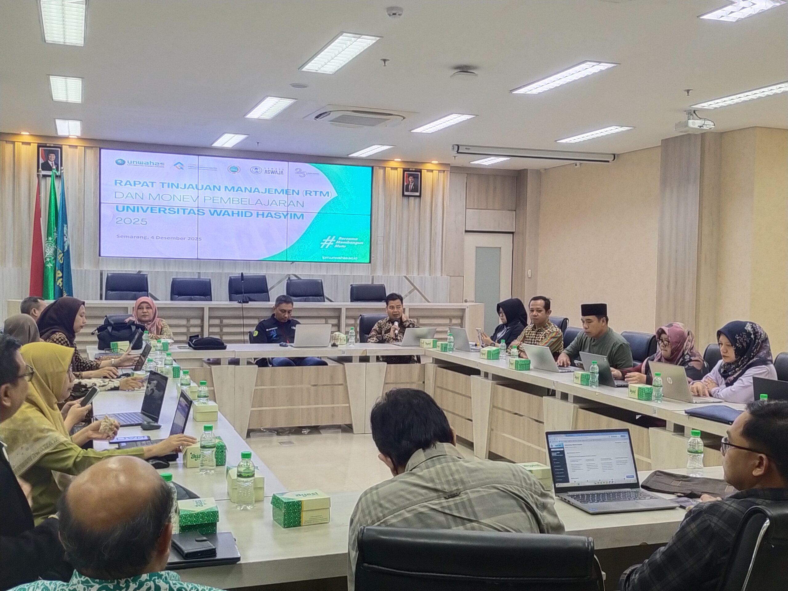 Universitas Wahid Hasyim (Unwahas) Semarang menggelar Rapat Tinjauan Manajemen (RTM) pada Kamis (4/12/2025) sebagai bagian dari upaya memperkuat sistem penjaminan mutu internal dan mengevaluasi kinerja institusi sepanjang tahun 2025. Kegiatan yang berlangsung di lingkungan kampus tersebut dihadiri pimpinan universitas, dekan, kepala lembaga, kepala biro, serta perwakilan unit pelaksana teknis.